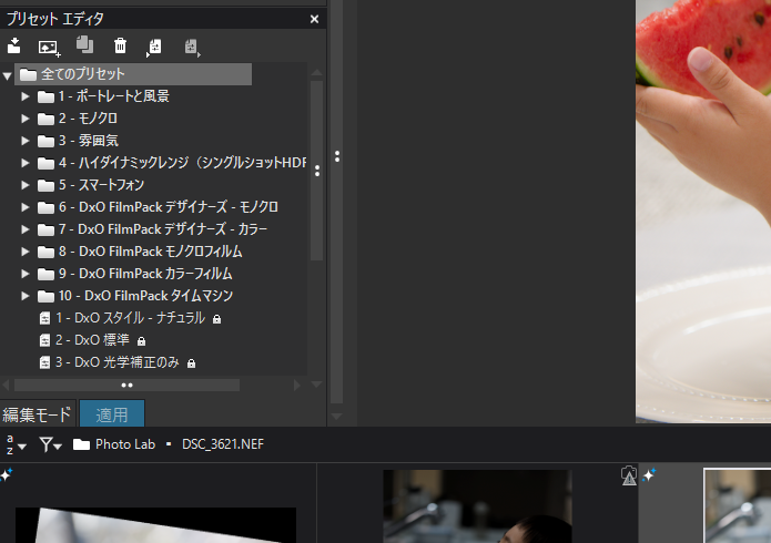 Photo Lab8では自分のプリセットを簡単に作って運用できます。