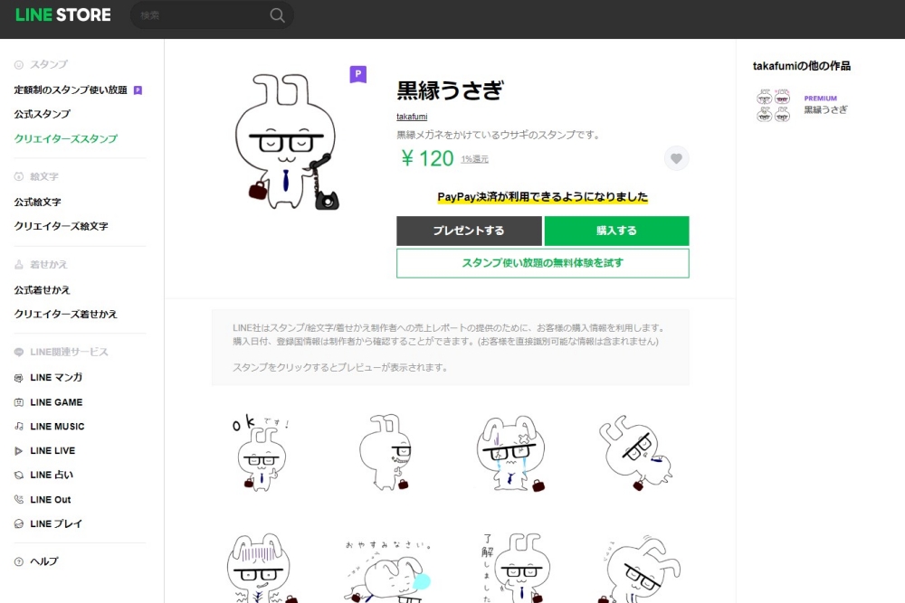 「黒縁うさぎ」はまったく売れなかったLINEスタンプを再利用したリサイクルキャラです。